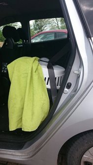 - Een kleed over de mand om spannende prikkels zoveel mogelijk buiten te sluiten;